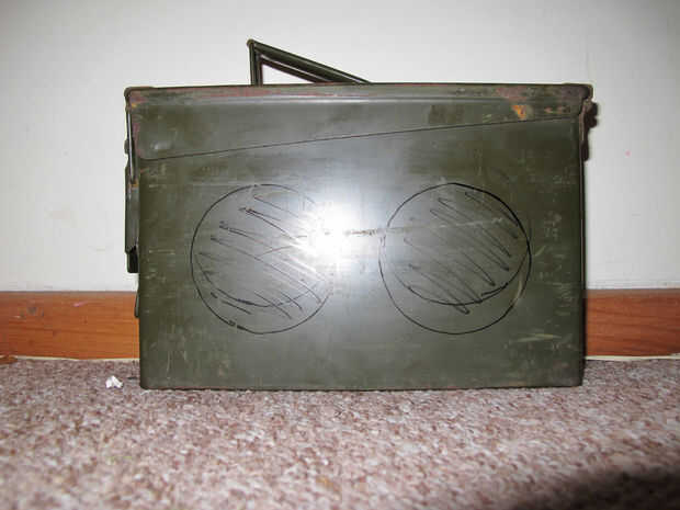 En primer lugar, me decidí por cortar los agujeros un poco más pequeños que 4", que originalmente iba a tener las rejillas montadas internamente... sin embargo la lata resultó bastante dura, así que los agujeros estaban un poco descuidado y afilados, para que montaje exterior logró encubrir esta desgracia y también la ayudó a buscar un poco más impresionante...