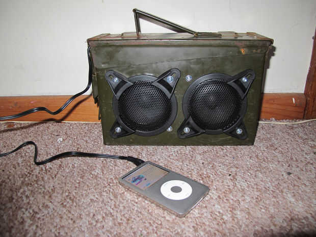 Mi siguiente paso es añadir un interior de madera contrachapada a la caja, lo que le permite ser utilizado para esconder objetos de valor en cuando voy a nadar en la playa, o tal vez simplemente para mantener mi almuerzo allí, sin correr el riesgo de conseguir cogido o enredarse en los cables o los altavoces.