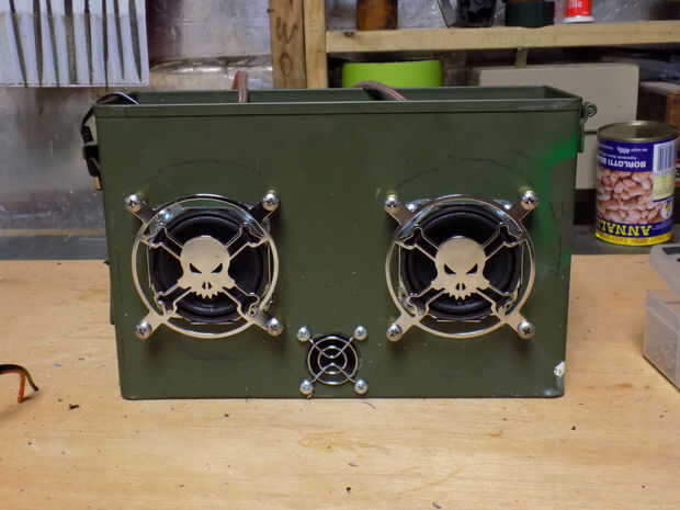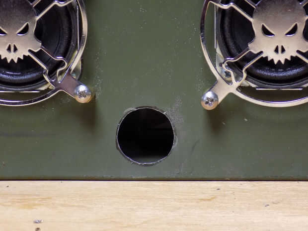 Decidí agregar un puerto para permitir la igualación de la presión entre el interior y fuera de la caja de munición. El cuadro está muy bien sellado y no quería añadir presión al diafragma de altavoces. Además quería llegar como graves fuera de él como sea posible y por tanto añadir que un puerto ayuda con esto.