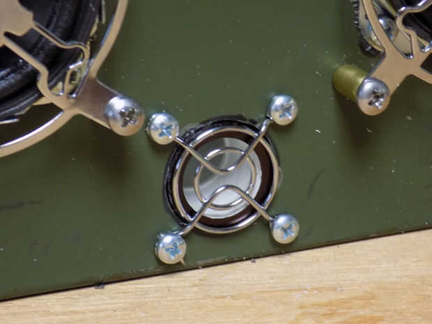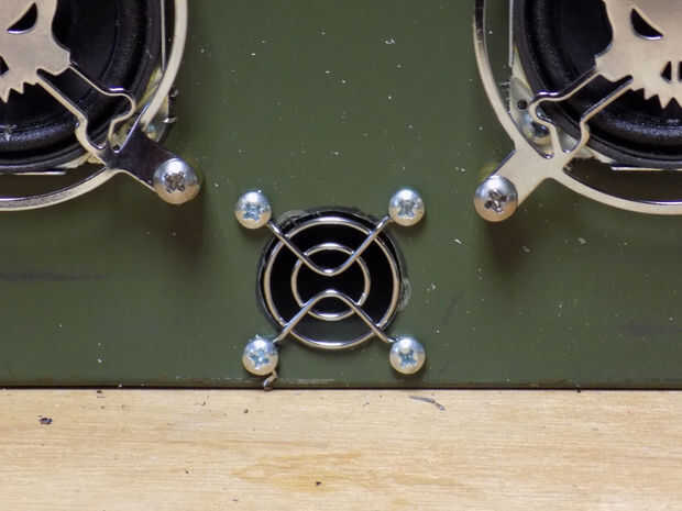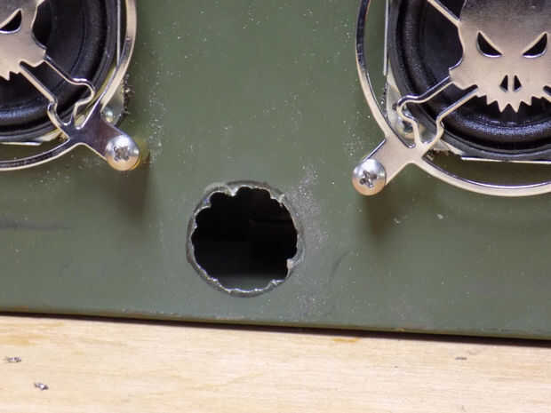 1. hacer un agujero entre los 2 altavoces. Sólo perforados alrededor del agujero y cortar la pieza de metal. Entonces presentar los bordes lisos.