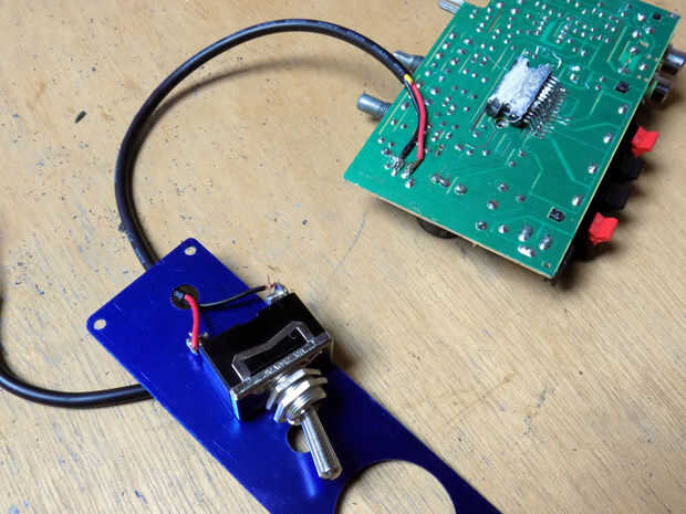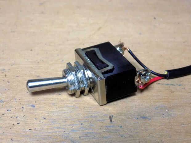 Si quería mantenerlo tan simple como sea posible, entonces sólo puede usar el interruptor del empuje que vienen con el amplificador. Yo quería tener algo un poco más robusto (y mientras) así que fui con un interruptor grande.