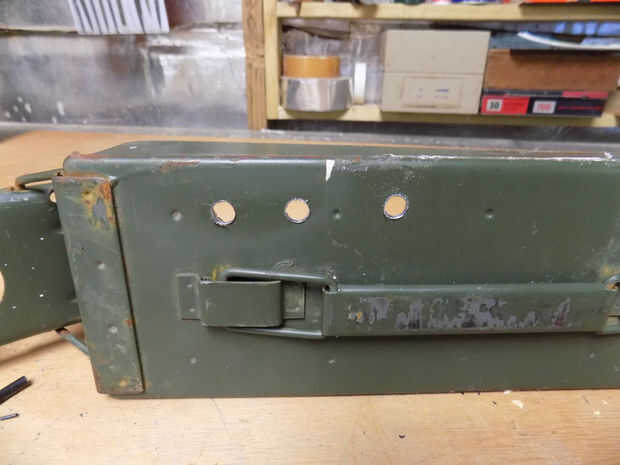 3. fácilmente puede quitar la tapa de la caja de munición abriendo completamente y empujar a la izquierda. La tapa entonces saldrá de sus bisagras.