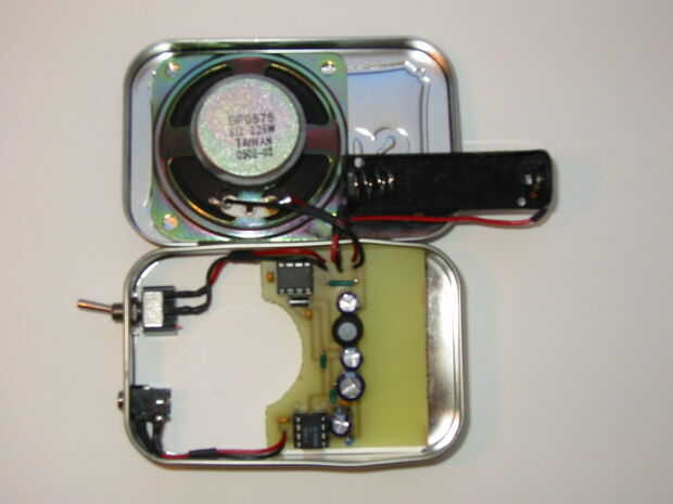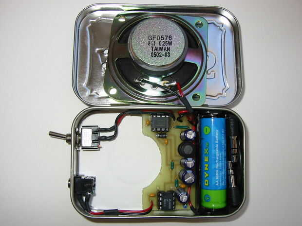 Varios comentaristas tempranos han señalado la falta de cuadros. Ahora hay fotos que detalla la preparación de la Altoids lata, sostenedor de batería, altavoz, interruptor, conector de audio, cable de audio y general instalación de piezas y montaje final. También hay varias fotos del tablero con todos los componentes electrónicos instalados pero no es una caminata paso a paso a través de este proceso. La imagen principal para el paso 5 (piezas de soldadura de PCB) tiene notas de imagen identificando cada una de las partes.
