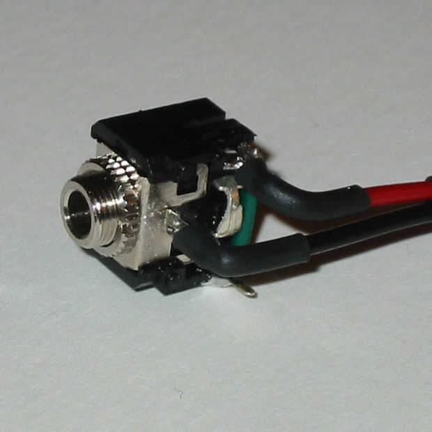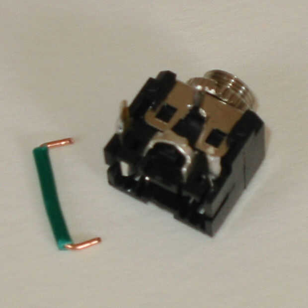 Únete a las zapatas de la señal izquierda y derecha con un pequeño trozo de alambre. Esto supone combinar las señales izquierdas y derecha del dispositivo de entrada - espero que lo hace! Una de las soldaduras más complicados. Con cuidado cortar un trozo de cable (verde), tira de los extremos y plegado cabe exactamente. Una vez que tenga un buen ajuste, fluir un poco de soldadura sobre las zapatas, coloque el alambre, la soldadura del derretimiento y empujar los extremos en lugar. Generalmente grabo mis dedos. Tienes que trabajar con rapidez y tener cuidado de no derretir el interruptor.