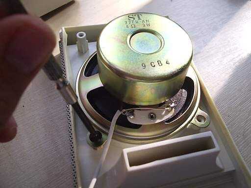 Con un destornillador, se llevó el cuerpo a pedacitos. Obviamente, todos los altavoces son diferentes, pero mina tenía tres tornillos que sujetan el conductor a la carcasa.