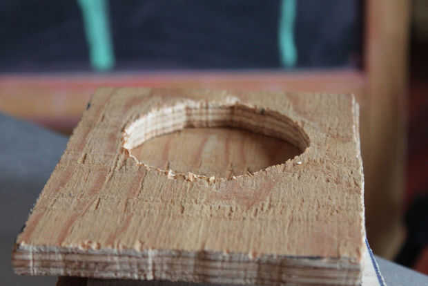 Este paso es fácil si usted ya tiene un agujero vio los mismos tamaños como su conductor, pero de lo contrario se puede utilizar una brújula y hack Sierra para crear el agujero. Orificio en una de la más grande 4,5 x 5,5 juntas. Para determinar dónde colocar el punto de la brújula, el centro de la madera y mide aproximadamente 1/2inch mayor que la longitud del radio del altavoz. Al medir el altavoz, mida desde el borde de la espuma al borde de la espuma, por lo que el orador no sólo entran a través de Cuándo es el momento de ser instalado. Para cortar el agujero usando un hack Sierra, taladro un agujero más ancho que la hoja en tu hack vio y luego tomar el hack vio aparte, pone la hoja a través del agujero y lo pones de nuevo juntos, corta el círculo, desmonta la sierra y llévelo hacia atrás por la pieza de madera cuando termines. (El método de la Sierra es más fácil decirlo que hacerlo)
