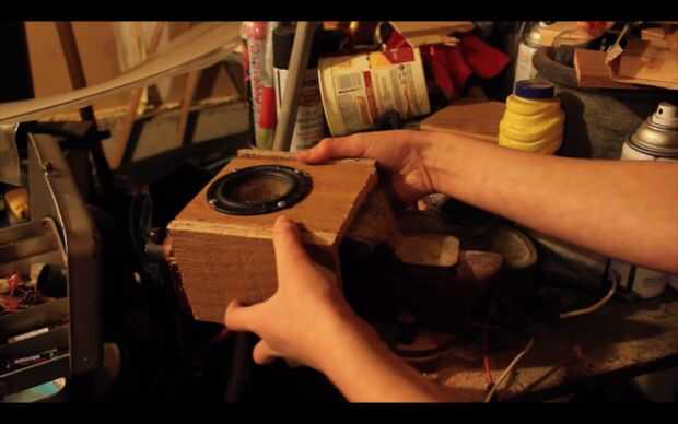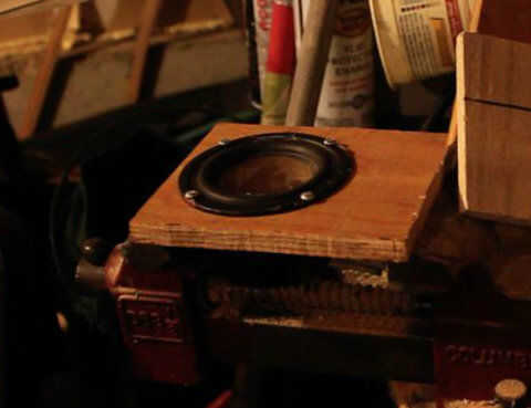 Monte el altavoz en la placa de 4,5 x 5,5 pulgadas con tornillos largos de 4 1/2 pulgada. A continuación Taladre orificios guía para los clavos. Les taladre en los tableros de 4 x 5.5. Utilice una broca pequeña. Posición por el ojo, o si lo desea, medirlas. A continuación poner la 4,5 x 5,5 Junta con el altavoz en el vicio, con el lado largo hacia arriba. Luego aplicar pegamento y clavo el tablero de 4 x 5.5 a 4.5 x 5.5 Junta. A continuación Dale la vuelta y hacer lo mismo. Después de puede perforar un agujero en el otro 4.5 x 5.5 Junta para el cable pasar. Ahora el cable de alimentación a través de ese agujero y aplicarle pegamento en ambos lados, ahora línea y clávelo en. Ahora puede tomar el final que no es madera de balsa, perforar agujeros a través de él, pegamento a la parte inferior de la caja y lograrlo.