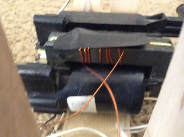 La bobina primaria tiene que ser la herida en la base de la ferrita del transformador flyback. Es mejor usar 5 vueltas de un alambre magneto de calibre pequeño. He utilizado 5 vueltas de alambre de cobre magneto de esmalte cubierto calibre 24. Se puede experimentar con diferentes cantidades de giros para obtener voltajes de salida diferentes y de amperaje.