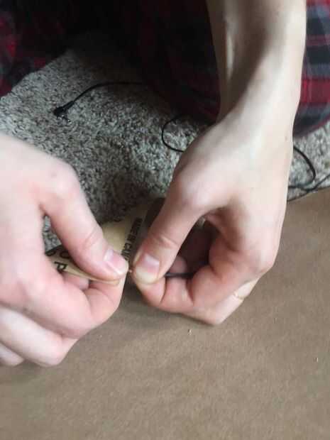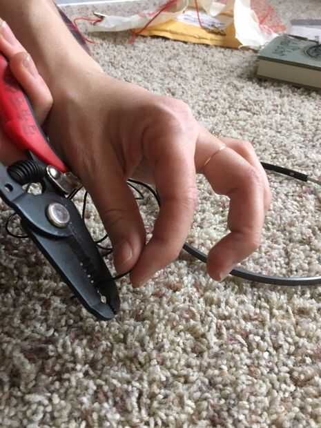 Luego corte el extremo recién cortado de los auriculares con un pelacables y los extremos de la arena al igual que con los extremos del altavoz del punto.