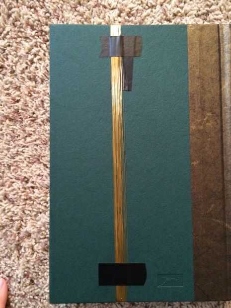 en primer lugar, la cinta el extremo del cable revestido para la contraportada del libro, justo debajo de la parte superior. Luego, envuelva el cable verticalmente alrededor del libro, asegurándose de que cada embalaje está justo al lado de la última y no se superponen (si hace un poco más, eso está bien).