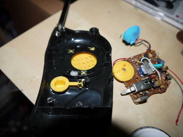 Altavoz (utilicé un 8 ohmios, 0.5 vatios uno extraído de un viejo de walkie talkie;