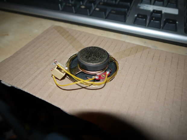 Si todo está funcionando, montar el altavoz en el orificio realizado en el panel frontal en el paso anterior y utiliza pegamento caliente y blu tack o cinta para sostenerla en lugar. Entonces, hacen un agujero en un panel (utilicé la parte superior) de unos 4mm y utilice cinta para montar al jack de auriculares.