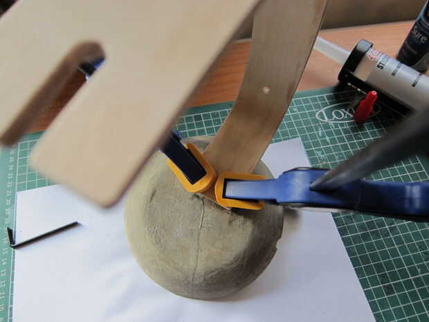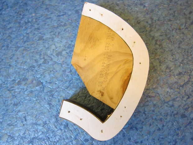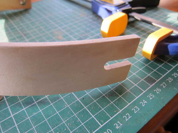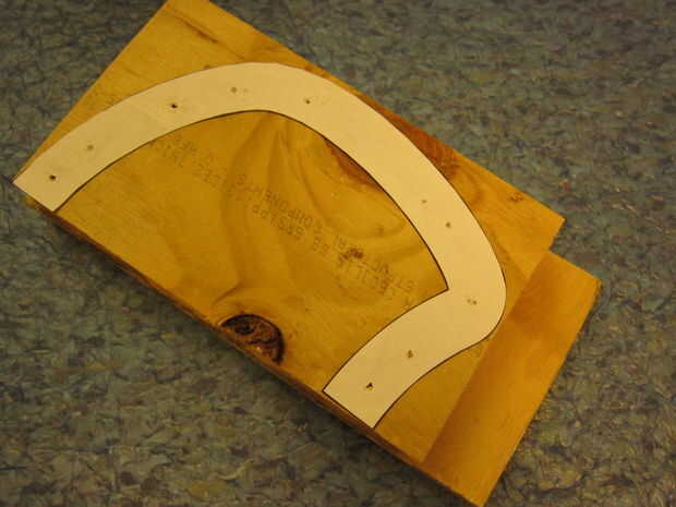 • Atornillar algunos cortes de la madera (suficientemente grande para que quepa su perfil curvo en). El espesor depende de lo ancho desea el soporte... Atornilladas tres pedacitos de 18mm de grosor ya que mi pie va a ser de 50mm de ancho.