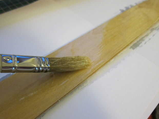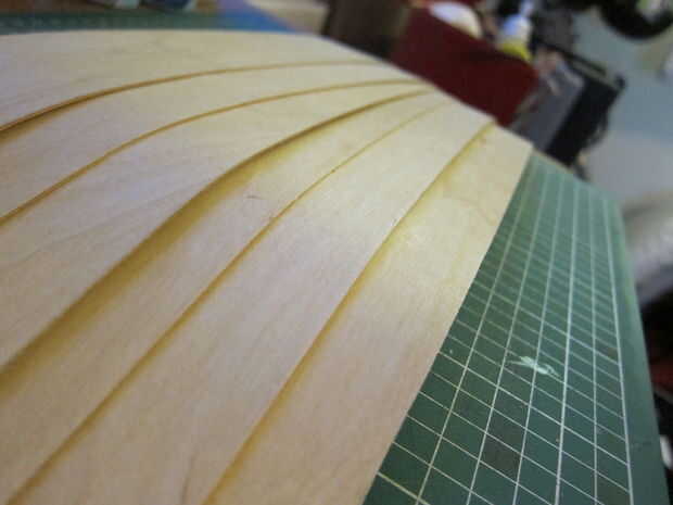• De la hoja de madera contrachapada de 0,8 mm, cortar 6 longitudes 50x450mm