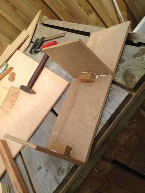 Daarna kan de goudstaaf en dirección worden gezet. IK heb básica gemaakt van houtlijm en kleine spijkers, waardoor de caja stevig en dirección zit. Que op het plaatsen van het middelste dwarsplankje. Este schermt het elektronische apparatuur af en hierdoor ontstaat ook gelijk een opbergvak de altavoz.