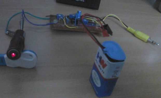 La sección de transmisor contiene un lm386 basado en circuito de amplificador de audio que amplificará el sonido de la señal desde el teléfono móvil (fuente), que está conectado la luz láser. Como señal de audio es más que la variación en la amplitud y la frecuencia de la señal continua, por lo tanto depende en la amplitud de variación en el audio se obtendrá la intensidad de la luz laser variados que deben ser dirigidas hacia el circuito del lado del receptor