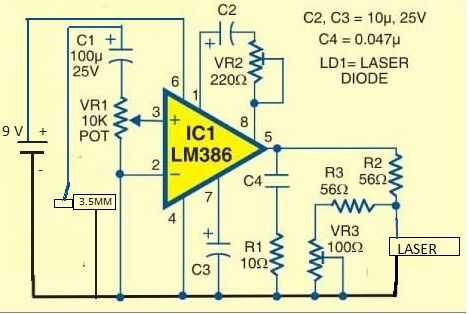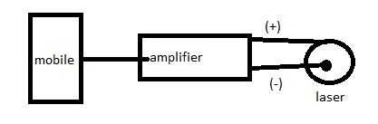 El audio a este transmisor se da a través de 3.5mm audio jack desde móvil o cualquier otra salida de audio de otros devices.this señal será amplificada por el amplificador de audio lm386 y utiliza para variar la intensidad del rayo láser.