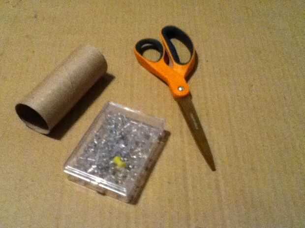 Necesita un tubo de papel higiénico, tijeras o cuchillo y push pins.