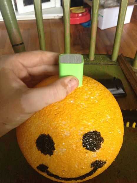 Bueno, ahora lo que haces es tomar el altavoz y póngala encima de su cosa cabeza de espuma. Traza alrededor de él con un marcador, y debe dejar una forma bien definida.