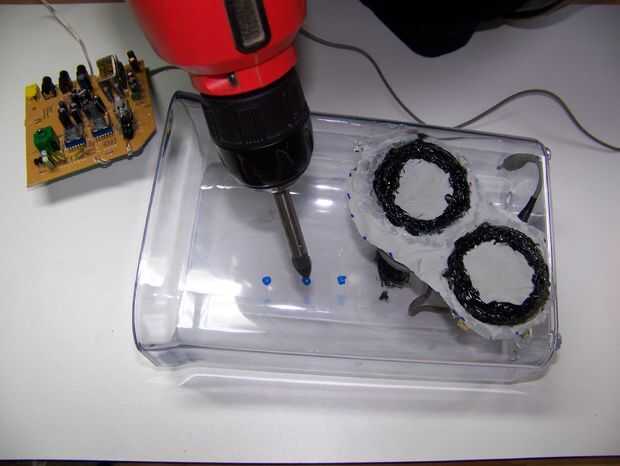 Coloque la placa de circuito donde te gustaría ser y marcar apagado donde tendrás que hacer agujeros para los botones de control y botón de encendido. Utilizar el vidrio y azulejo Taladro Brocas para esto y asegúrese de que todo se ajusta muy bien. Para mi proyecto, tenía que asegurarse de que los agujeros de la perilla eran sólo lo suficientemente grandes que las perillas se giran libremente, y para el interruptor que tenía que asegurarse de que un pegamento caliente palo cabrían suavemente--más en eso más adelante.