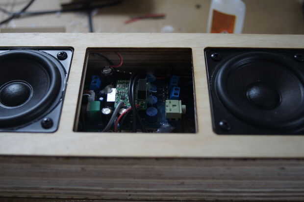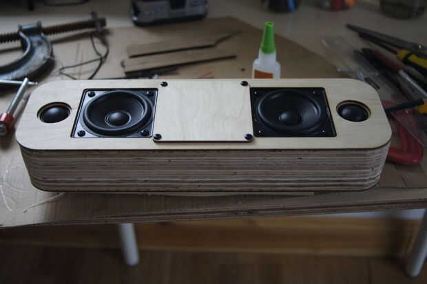 Y sólo como eso, el altavoz está acabado! Si desea, puede añadir una rejilla de altavoz de paño y madera contrachapada al frente y algunas piezas más de madera contrachapada de 3mm y luego pegar una tela en la parte inferior de la capa superior.