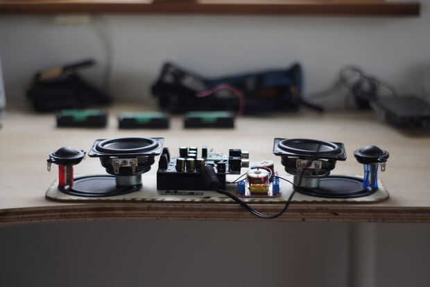 En este diseño he decidido colocar los componentes para que tenga fácil acceso a los tableros como el amplificador y el módulo bluetooth. Otros componentes como los crossovers nunca deba ser inspeccionados, por lo que he puesto más alejado del agujero de servicio. Las cruces se colocan directamente debajo de la abertura para el woofer derecho, por lo que si necesito acceder a él puedo Desenroscar el woofer y acceder a él. Los otros componentes son directamente debajo del orificio de servicio, que también me ofrece un fácil acceso.