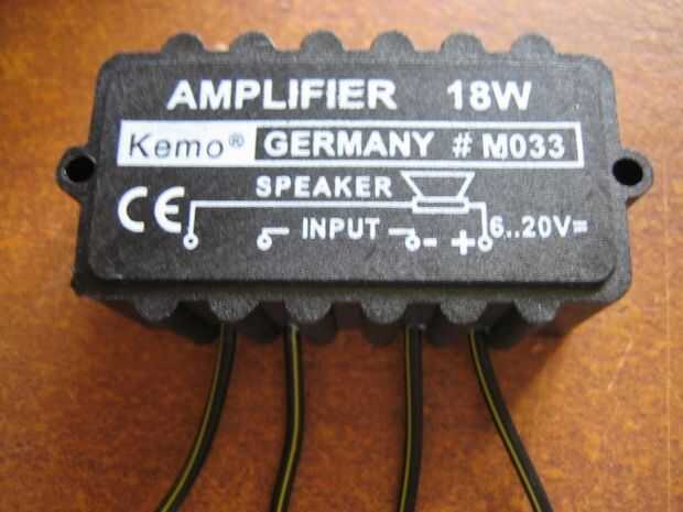 -Módulo del amplificador 18W (yo la Kemo #M033, puede utilizar otros amplificadores como los vatios no son 2.5 veces más grandes que su nivel de energía)