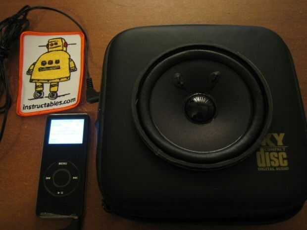 Ahora puedes llevar este altavoz portátil en cualquier lugar que te gusta. Incluso puede poner tu ipod dentro de la caja del cd cuando no esté en uso!
