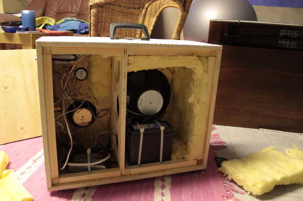 Tenía unos altavoces viejos ahí así que tomó algunas lanas de cristal de ellos y pegados a las paredes de mi altavoz. Creo que este se humedezca la caja del altavoz y mejorar el sonido del altavoz.