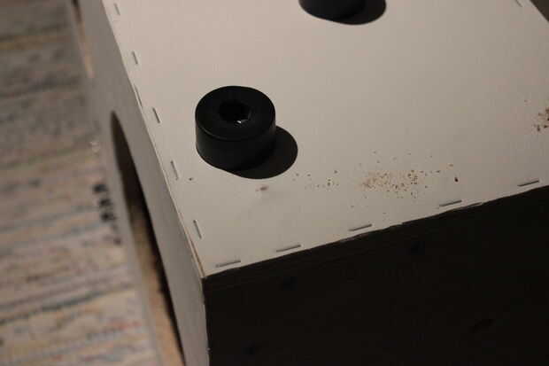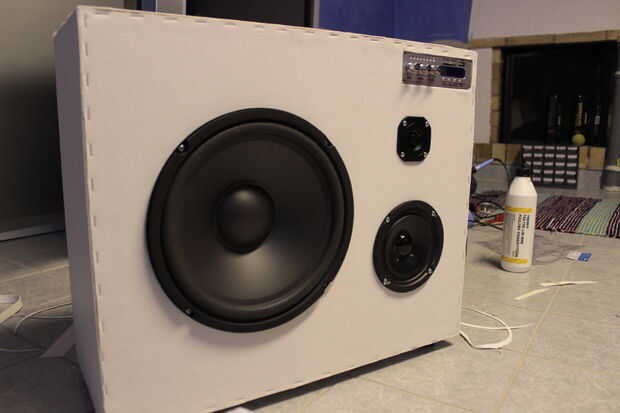 Los oradores fueron Unidos con 4 tornillos. Más tarde en mi pensamiento el color de los tornillos estaba un poco feo así rocíe pintado negro.