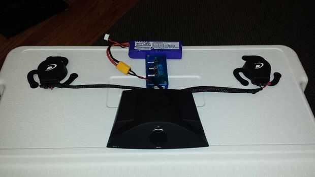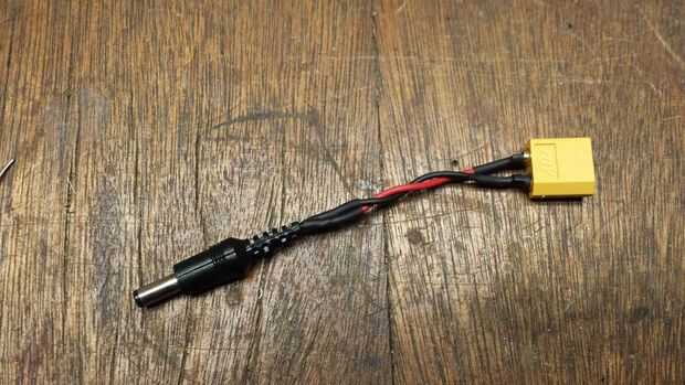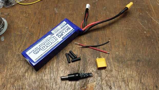El DTA-1 amplificador puede ser alimentado por 8 pilas AA o un adaptador de pared externa. En las baterías el amplificador será pasados 5-6 horas. Sin embargo, tenía algunas baterías de LiPo de mi compilación quadcopter. Al medir su tensión, encontré que le proporcionan suficiente potencia para el amplificador. Soldar encima de un conector rápido con algunas piezas de repuesto que tenía. El paquete de baterías de LiPo debería, en teoría, potencia el amplificador más de las 8 pilas AA pero todavía tengo que ejecutar una batería lo suficientemente largo para determinar la duración de la batería completa.