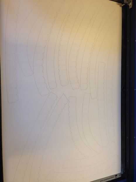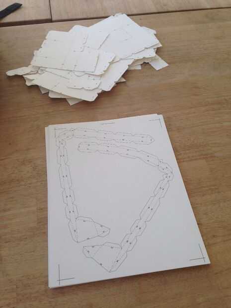 He utilizado esta técnica en muchas de mis esculturas. antes tenia acceso al cortador del laser, solía imprimir cartulina de tamaño carta por pilas entonces cuidadosamente cortadas el patrón y marcar las líneas de pliegue. todo el proceso me podría tomar días. Ahora con la ayuda del cortador del laser, puedo separar los modelos a los patrones más grandes, la cama del corte del laser es medida 24 X 36 pulg. Después de experimentar con diferentes tipos de papel, encontré una de colorstock blanco con el grosor adecuado y buen acabado superficial.
