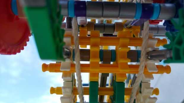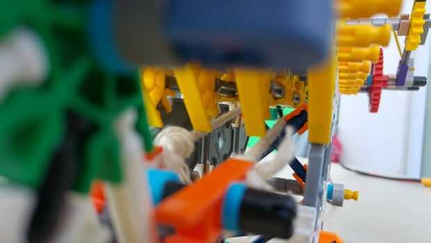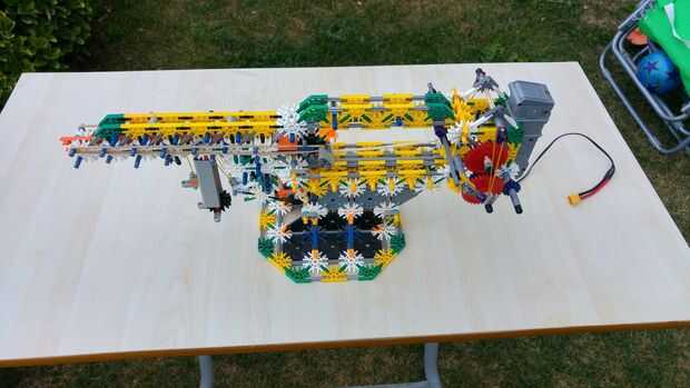 El motor gira la varilla, la varilla enrolla la cuerda, la cuerda tira el perno que pega. Cuando es retirado el pasador de ram suficiente gatillo se mueve hacia arriba y bloquea el pasador de la ram. Media del engranaje es movido y motor del engranaje y el engranaje de tracción es independiente (posición de ralentí). Pero todavía hay un problema, si tenemos el gatillo que no disparar el arma, porque la cuerda es venteada. Así que tenemos que descansar antes de disparar. La banda de goma que es venteada mientras que cuerda es venteada para ello. Cuando los engranajes se establecen en ralentí esta goma desenrolla la cuerda así que puede disparar la torreta.