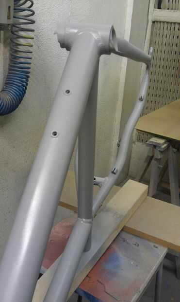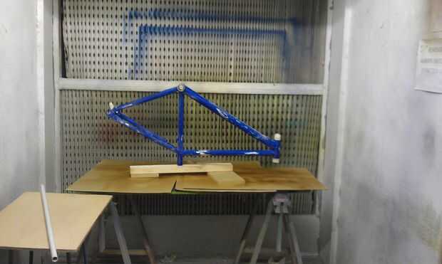 Establecer el marco para que cada parte de él se puede acceder. Mi bruto doweling-nailed-to-block-of-wood trabajó bastante bien, ya que me permitió hacer girar el marco metiendo mi dedo en la cabeza a girar sin tocar la pintura húmeda.