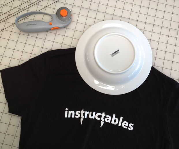 Centro de la taza una pulgada o dos por debajo del cuello existente. Asegúrese de que está dejando una cantidad igual de espacio desde el borde del tazón de fuente para cada hombro.