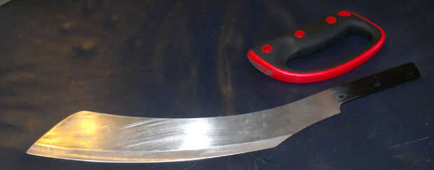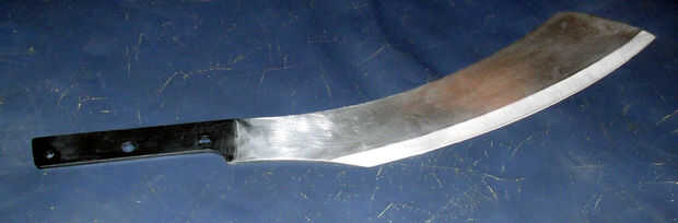 Para la lámina, solía lija 120 fuera de la arena. Salió bastante fácilmente. Me quité el mango y lijar todo lo anteriores donde se encuentra con la cuchilla, por lo que la hoja entera se lija, y no raye el mango con el papel.