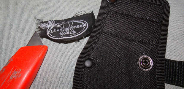 Tomó el cuchillo y cortar la etiqueta de la envoltura y usa un encendedor para sellar los hilos de rosca de nylon suelto para que no corra.