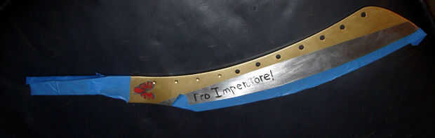 Una vez que la cuchilla está sellado, despegar la cinta adhesiva y vuelva a colocar la manija.