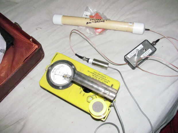 La foto de la izquierda muestra un 6a Vic con 2 adaptadores de alimentación un 7807 de LND. El adaptador más pequeño no tiene ningún diodo y el conmutación adaptador esté configurado a 450v. La escritura en el medio del PVC dice "sin blindaje sección." La sonda interior tiene un escudo de metal para bloquear betas. La foto de la derecha es el mismo 6a Vic con el tubo de caldo 6993. Ambos aparecen reaccionando a un pedazo de naranja Fiestaware con esmalte de uranio natural. El amarillo puede destornillado en la foto derecha es un altavoz piezo pasivo para CDV-700 que he comprado fuera de eBay.