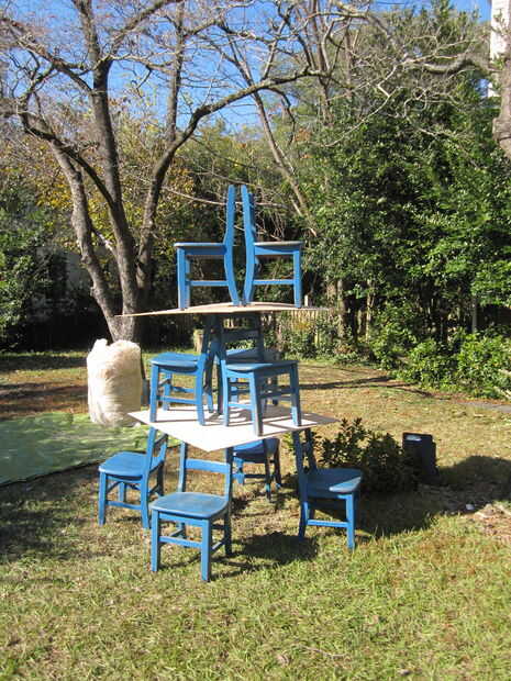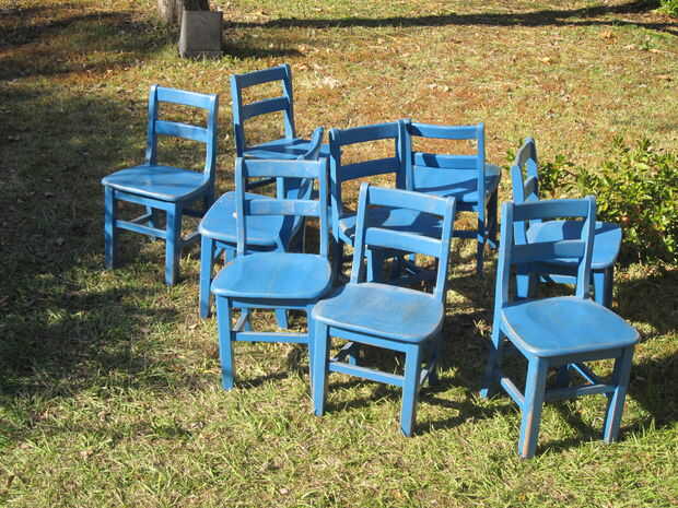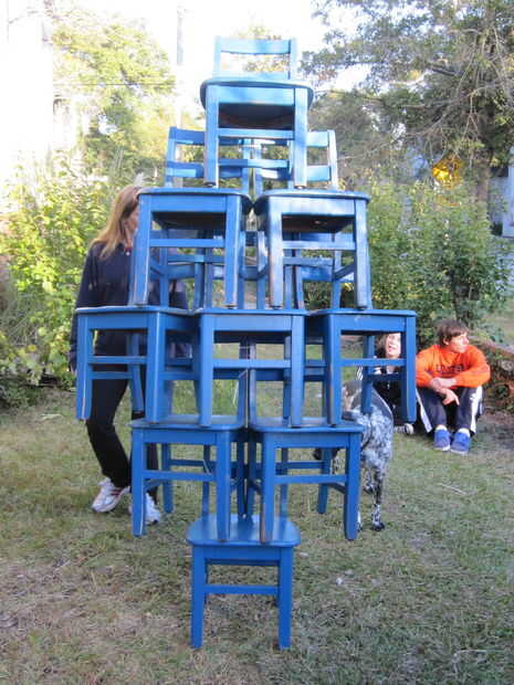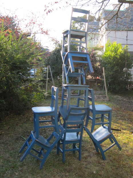 Tira de ellas hacia fuera apilado limpio ellos apagado y comenzó. Pasamos por una infinidad de ideas de diseño, apilando las sillas un número de maneras. y tratar de idear un método de fijación que no arruine las sillas.
