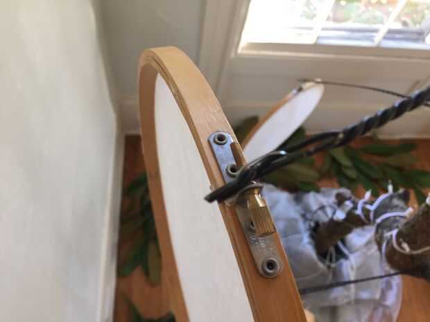 Nota: Para montar el disco en nuestras barras se utilizaron ganchos de ornamento. Para colgar el ornamento ganchos en las varillas llevó dos pares de alicates y agarró las barras con cada par unas pocas pulgadas aparte de uno a. Luego se mueven en direcciones opuestas crea un pequeño espacio entre algunos de los filamentos. Lo suficiente como para subirse el gancho. Desafortunadamente no tomé fotos de esa acción.