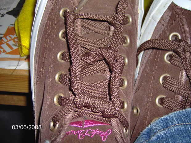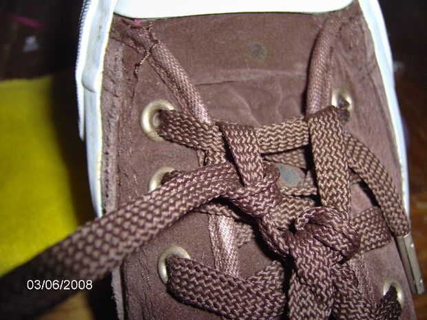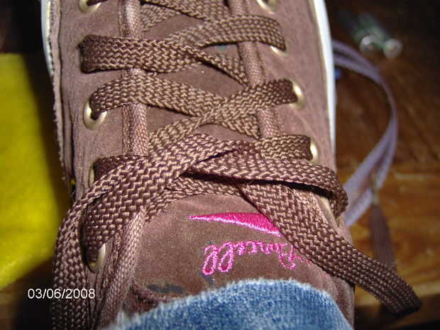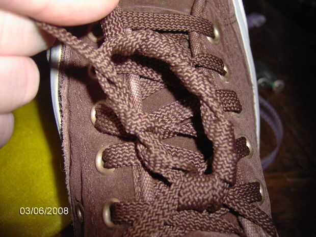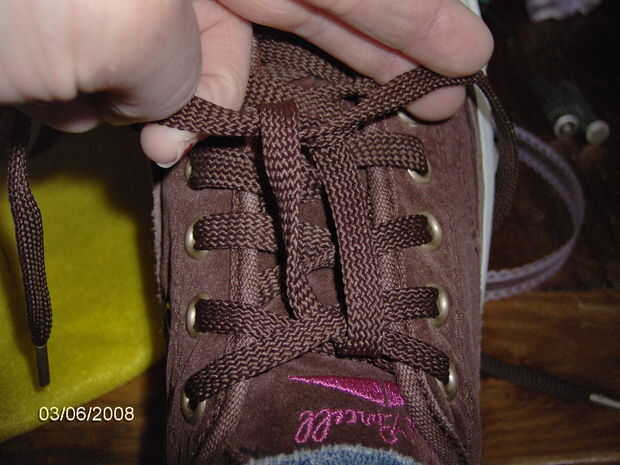 A continuación, retirar los cordones y colocarlo a través de la zapatos de encaje cosita. Atarla.