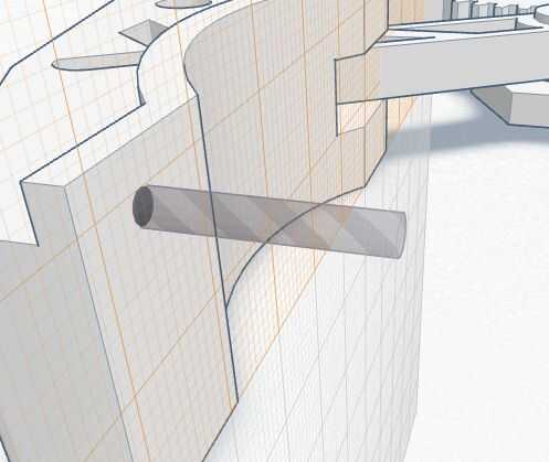 Utilizando la herramienta cilindro orificio Coloque el cilindro contra la superficie que desee cortar, luego 2 mm dentro de la superficie de la hendidura.