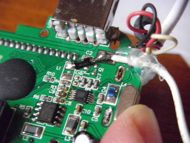 -En vez de quitar el condensador (C2) cerca de la antena, he preferido omitir por soldar un pequeño cable entre la antena y la conexión más cercana (L1).