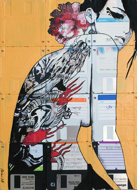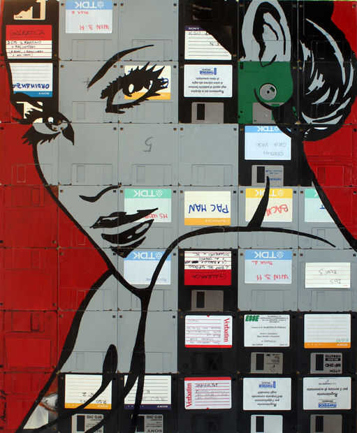 Combina la pasión de arte y computación que Andrea ha desarrollado su propio estilo basado en la mezclan con marcadores, pintura en aerosol, esmalte, pintura acrílica, spray de yeso. Los temas son en su mayoría retratos, a menudo de míticos personajes como superhéroes marvel, starwars clones, la famosa roca... temas muy geek para obras que evocan el mundo de la informática.