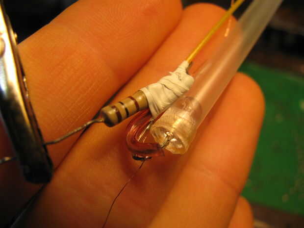 Mi costumbre es ejecutar que 's mi led en paralelo. Si haces eso es bueno agregar una resistencia a la terminal de uno de los leds +. Generalmente uso cualquier resistor adecuado tenga a la mano. En este caso estoy usando un resistor de 100 ohm. La resistencia es muy importante o bien se fundirá sus leds.