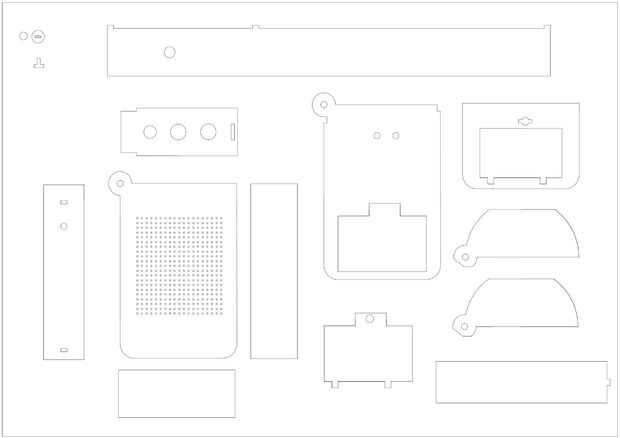 Para hacer la caja para la placa adapté de la radio Sony he creado un archivo de CAD con las piezas que necesitaba para cortar con el cortador láser. Decido usar 2mm estireno, ya que es un plástico flexible y presta a su auto a doblez del calor.