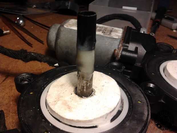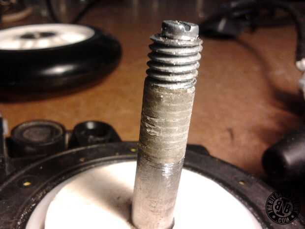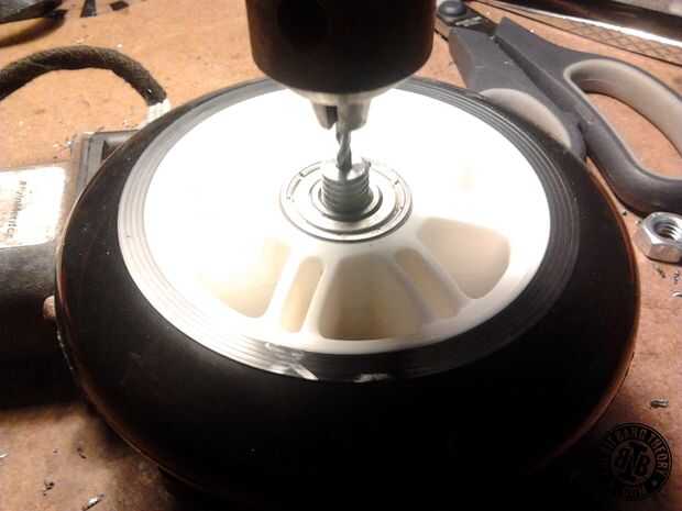 Luego verificado que el árbol no era lo suficientemente larga para sujetar las ruedas que quería usar, que eran dos de 100 mm de las ruedas de patines en línea. Otra cosa que tenía que hacer era encontrar una manera de mantener la rueda en su lugar. Así, hacking del motor era necesario y pensé en una manera de extender el eje usando un pedazo de varilla de 8 mm roscado donde también pude poner una tuerca para mantener la rueda en su lugar.