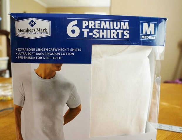 1 paquete de camisetas su tamaño (nosotros compramos un paquete de medio 6 hace 4 X de altura camisetas por diecisiete dólares).