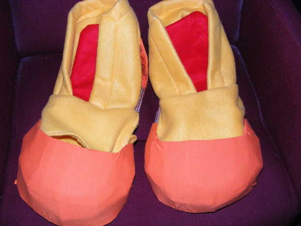 Sólo pegué una línea alrededor del borde debajo de la suela para que cola no se seca sobre la tela.